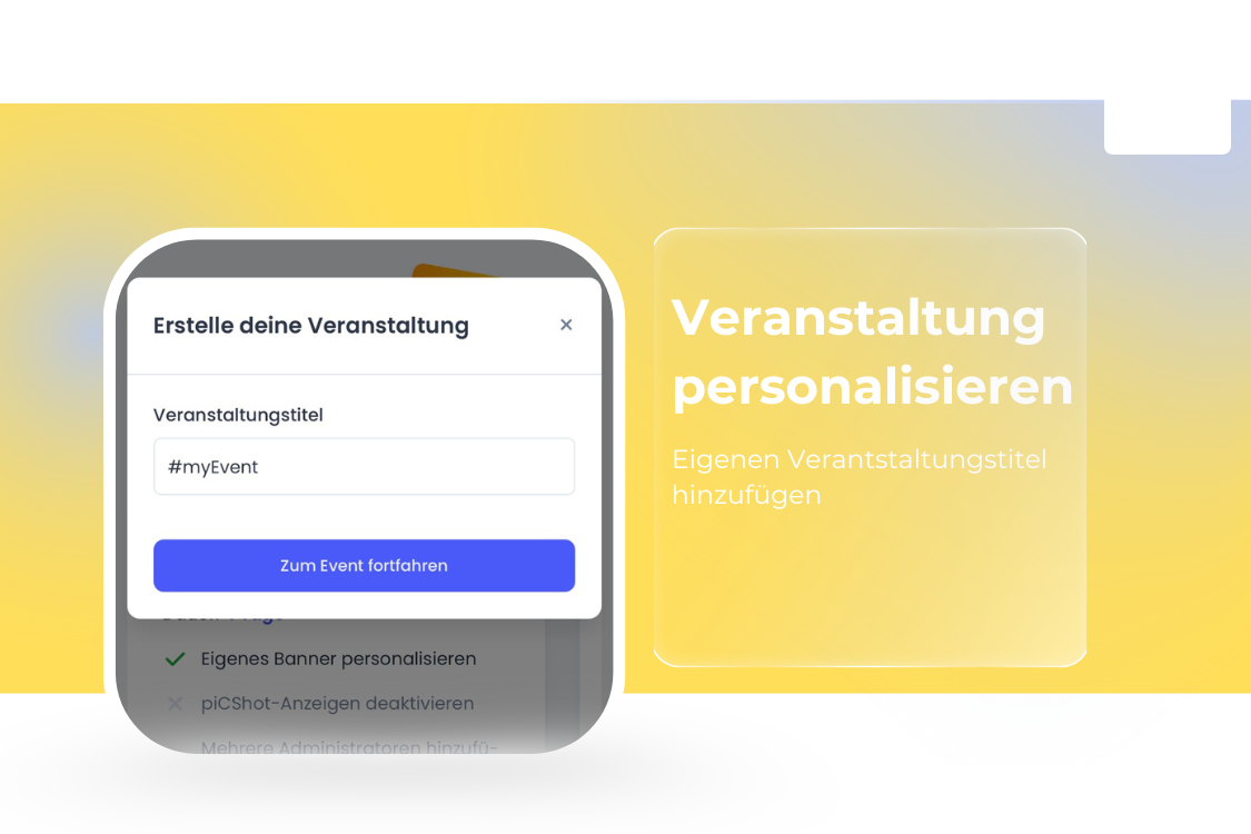 Mit piCShot wird jedes Eventfoto in einen starken Markenbotschafter verwandelt. Durch individuelles Branding, Logos und CI-Elemente bleibt Ihre Eventmarke auf jedem Bild präsent – sowohl für Gäste als auch für deren Social-Media-Communities.
